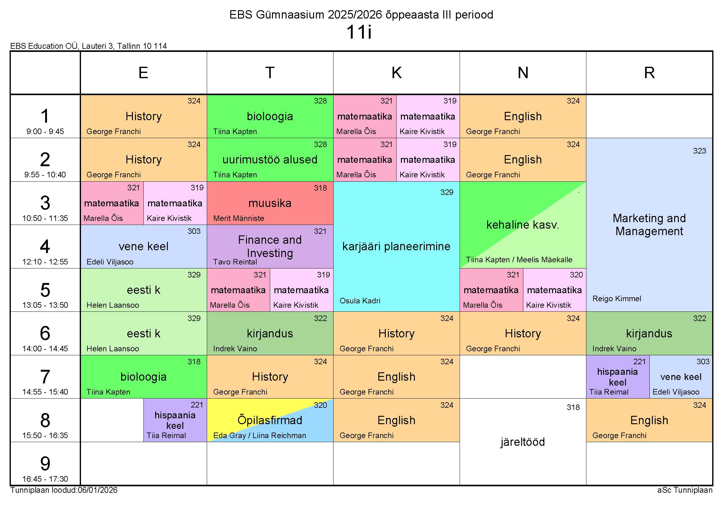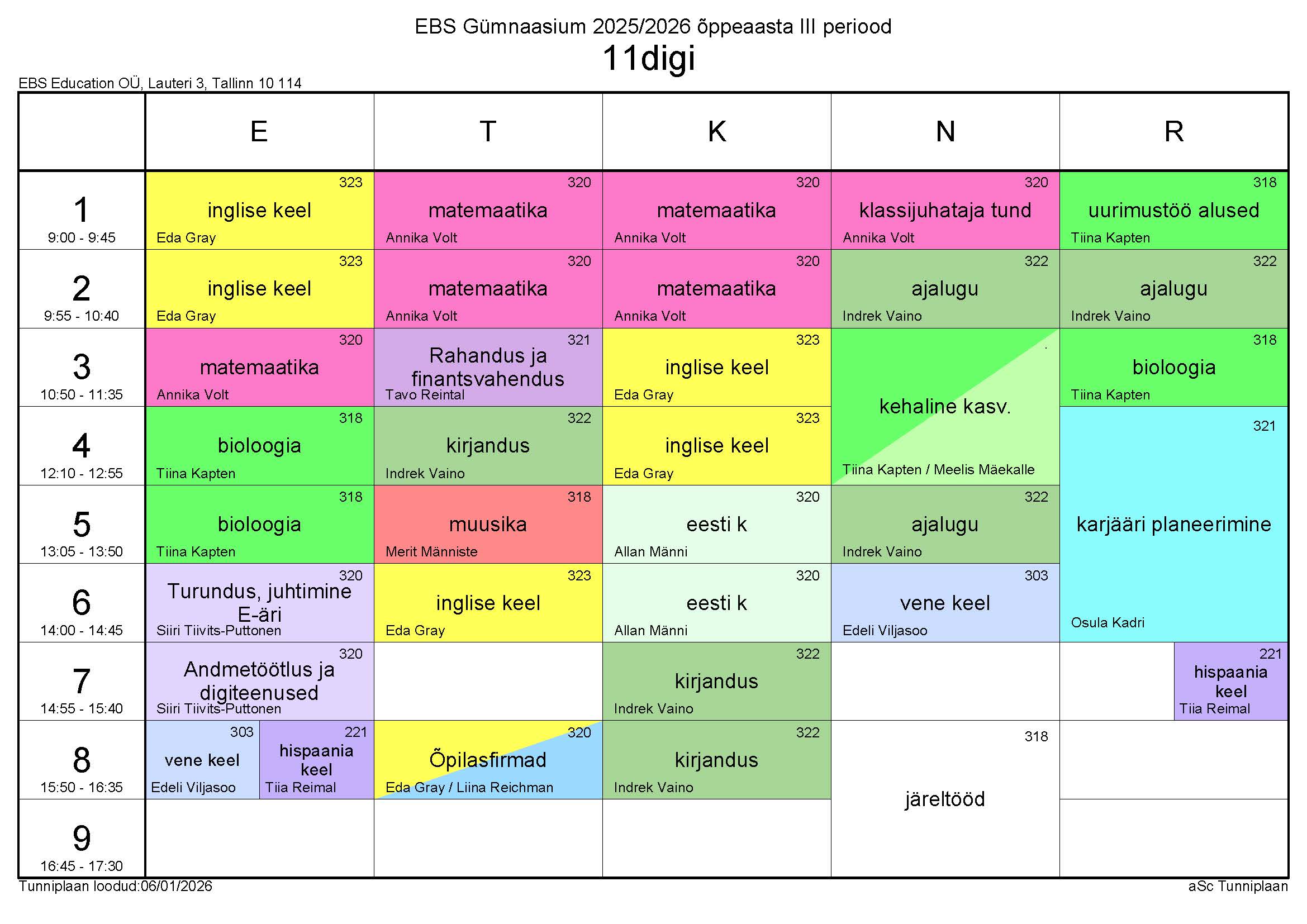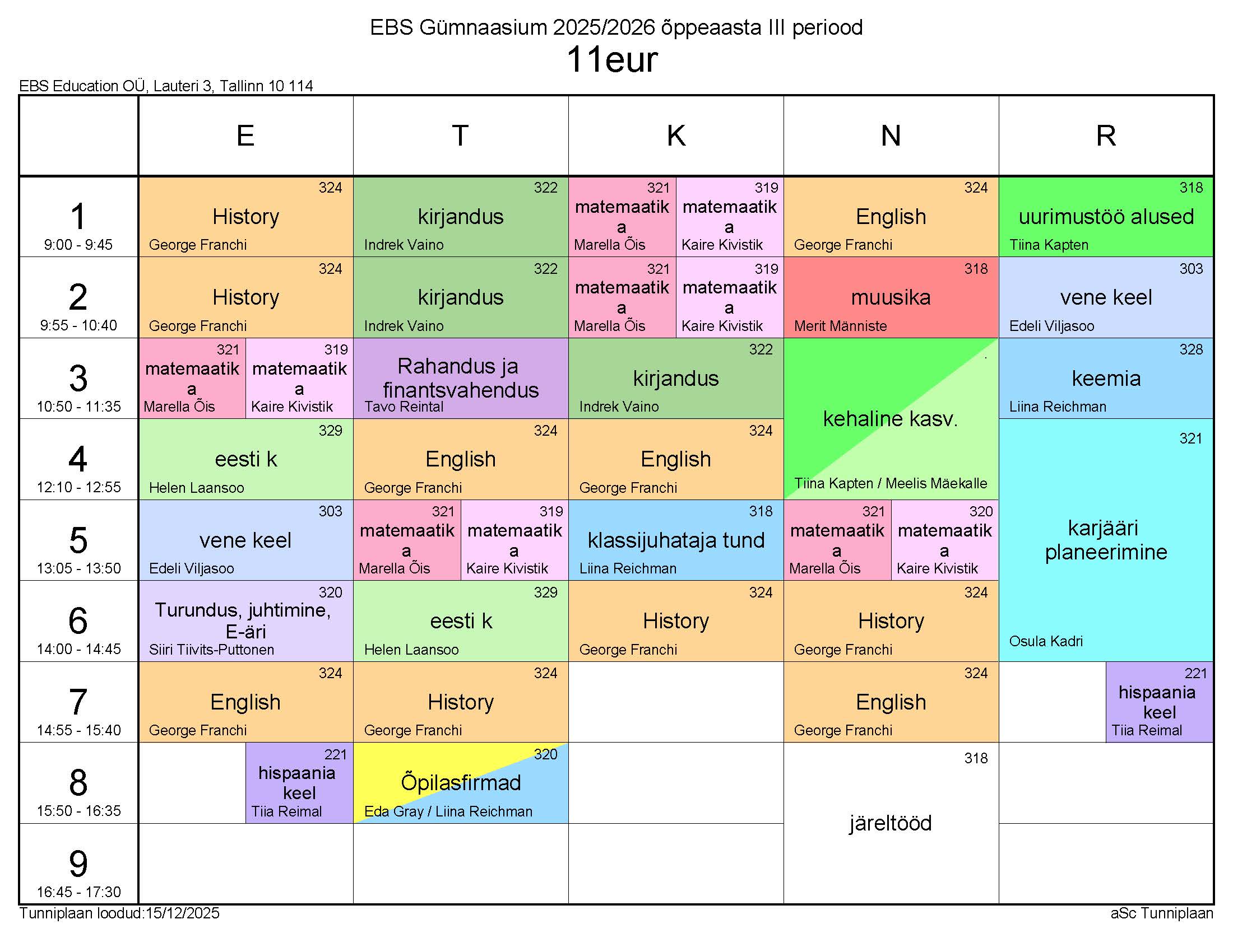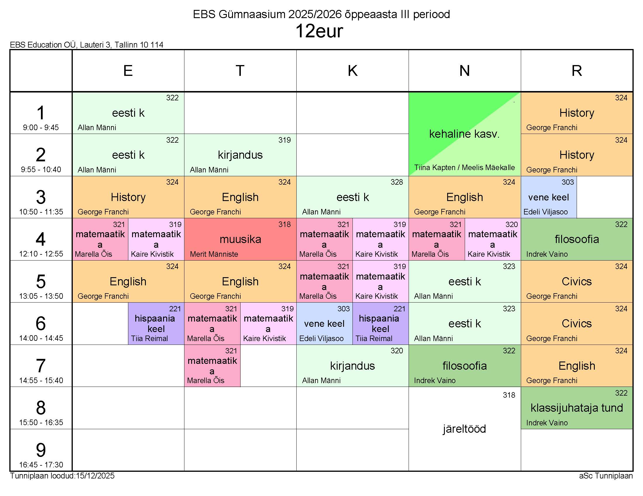 Tunniplaan 15.12.2025 – 13.02.2026